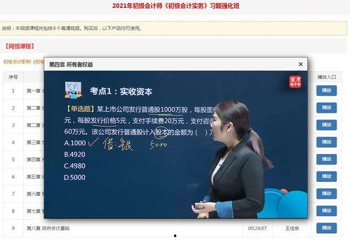 你有没有想过,学习初级会计实务是不是可以像看电视剧一样轻松有趣呢?没错,现在就有这么神奇的初级会计实务教学视频,让你在家就能轻松掌握会计知识,是不是很心动?那就跟着我一起,揭开这些视频的神秘面纱吧!