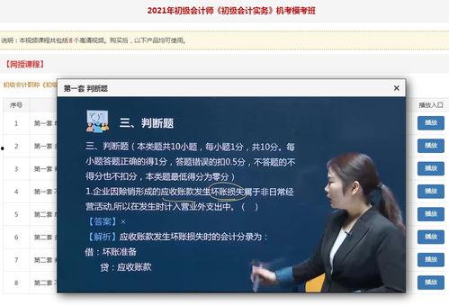 这些初级会计实务教学视频不仅内容丰富,而且互动性强。很多视频都设置了问答环节,让你在学习过程中随时提出疑问,老师会及时解答。此外,还有一些视频提供了在线练习题,让你在学完一个知识点后,可以立即进行巩固练习,提高学习效果。